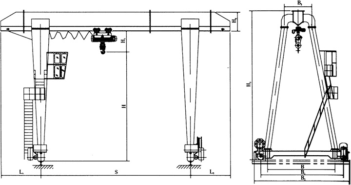 甘肅蘭州門式起重機 豎井龍門吊的結構形式和起升機構