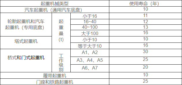 幾種不同類型起重機械的使用壽命(正常使用)